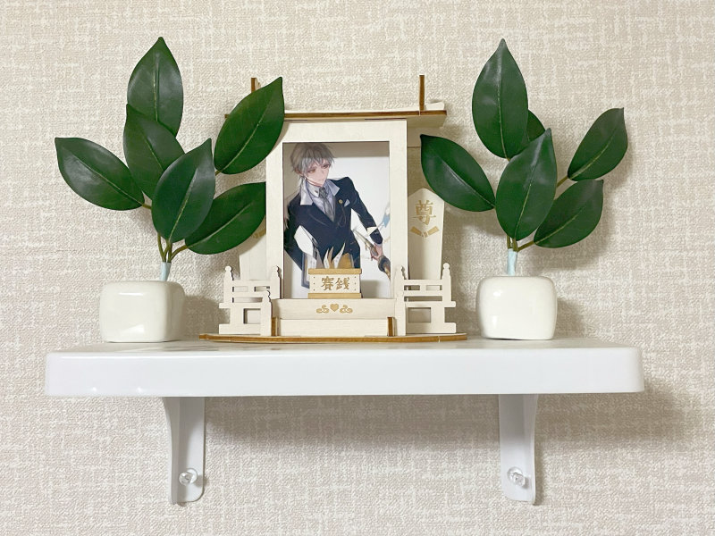 鶴丸の新規イラスト嬉しすぎたので、スキャンして、以前奉ってた推し神棚(参考≫2023/7/30)の御神体を更新させていただきました✨