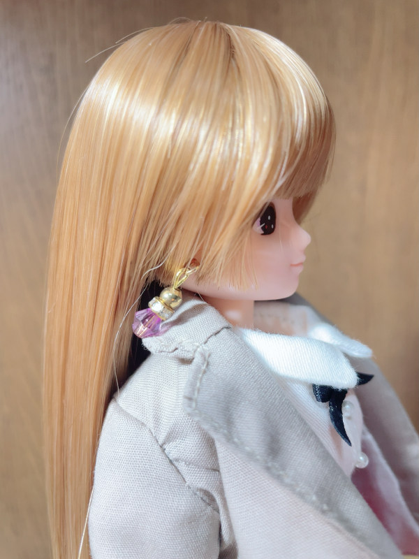 ずっと稚拙な自作のウイッグを着用させていたのが大変申し訳なかったため、ネットでドールウィッグを探して購入したのが今日届いたので、早速着けてもらいました!