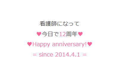 からの、今日はお休みだったんですが、実は今日4月1日はわたしが看護師として働き始めた日であるんですよね。12周年です。